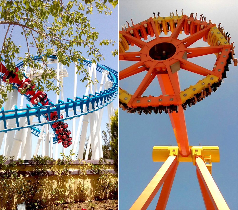Аттракционы есть и поспокойнее, и те, что сумеют пощекотать вам нервы, многие имеют ограничение - не по возрасту, а по росту, обычно это 1.40 м.