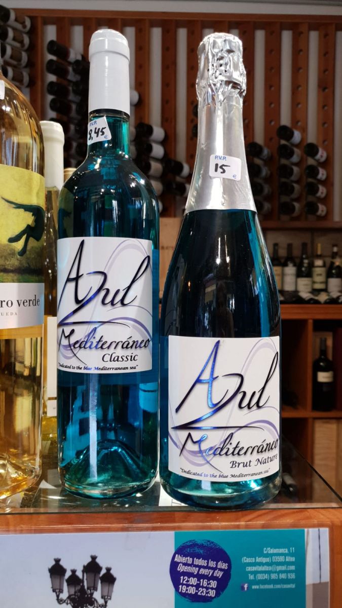 На самом деле оно белое сухое, 100% шардоне. Почему синее? краситель - из шкурки синего винограда, натуральный.